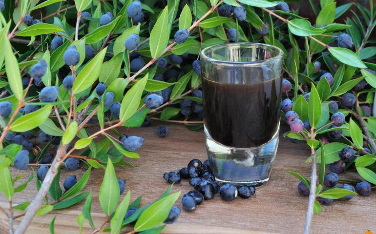 Il liquore di mirto ottenuto dalle bacche essiccate ora è pronto, servirlo ghiacciato!